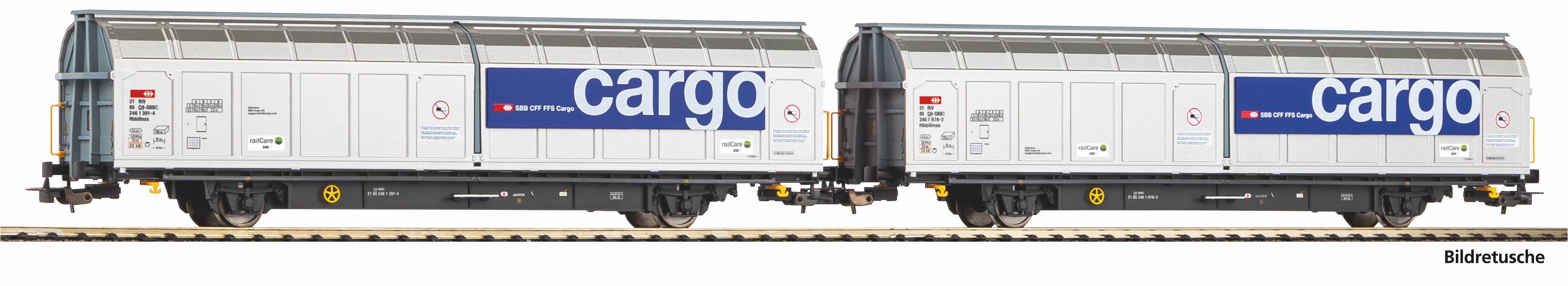 Neuheit 2025: Wagenset bestehend aus zwei Schiebewandwagen in Ausführung der SBB Cargo / Railcare in Epoche IV