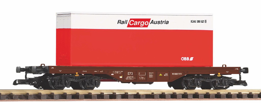 Flachwagen der ÖBB mit 20' Rail Cargo Austria Container für die Epoche 5