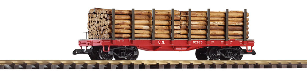 US Güterwagen als Druckvariante der CN mit Echtholzladung.