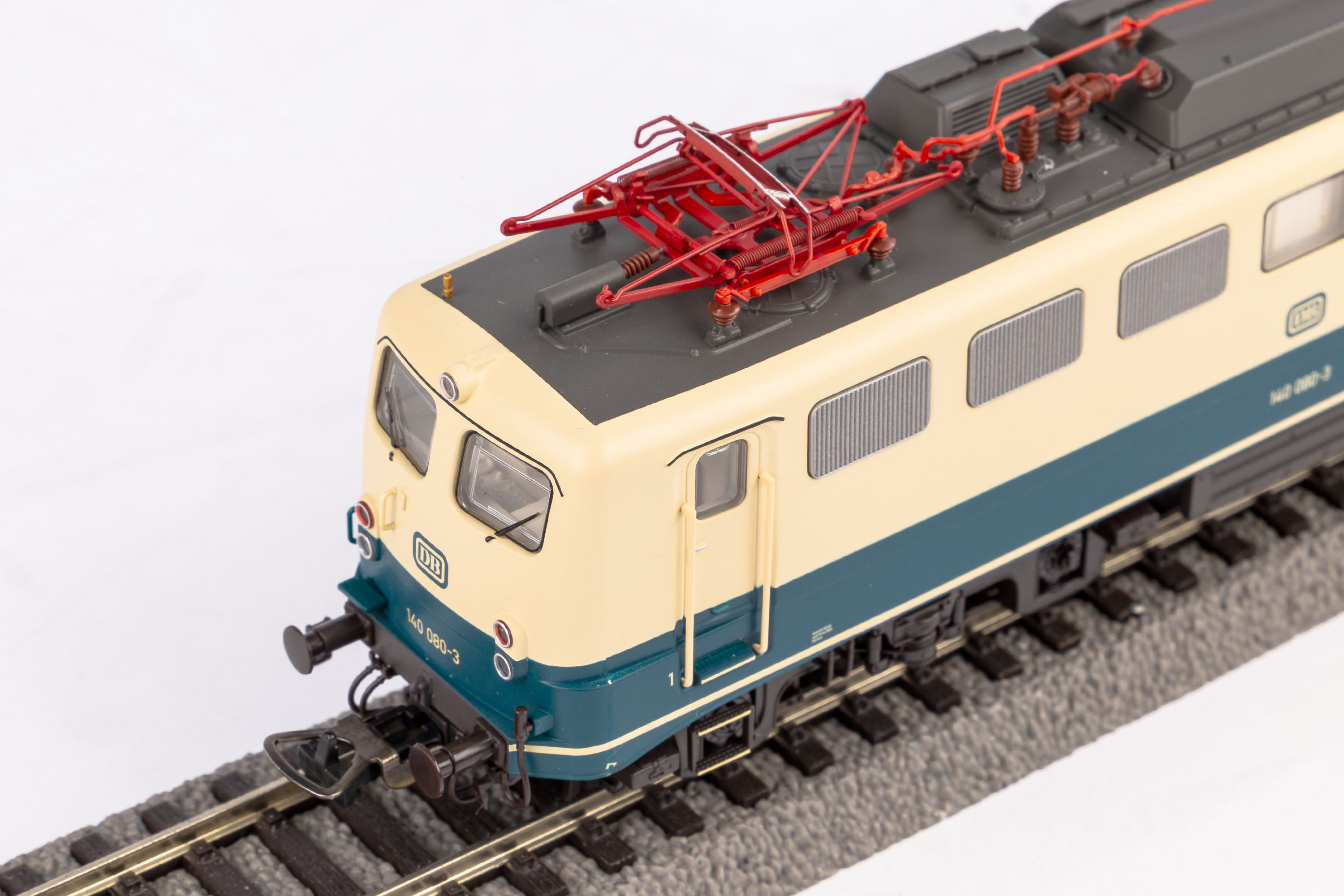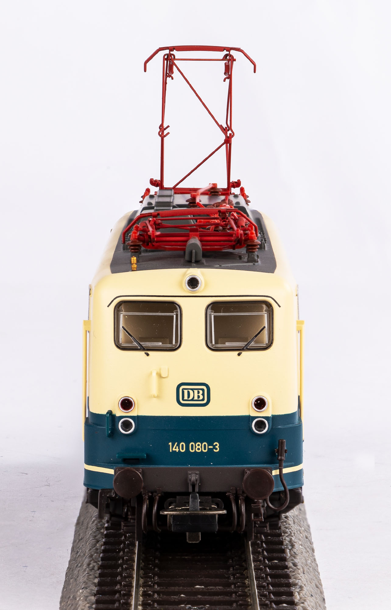 Variante der BR 140 in beige-blauer Lackierung der BR in Epoche IV. Mit der Baureihe 140 in der Epoche IV wendet sich PIKO wieder einem absoluten Klassiker der Deutschen Bundesbahn zu. Die Brot- und Butterlokomotive erreichte durch ihre hohe Stückzahl und den jahrzehntelangen Einsatz eine große Popularität. Das PIKO Modell verfügt über zahlreiche Extras, unter anderem freistehende Griffstangen, eine digital schaltbare Führerstandsbeleuchtung und beiliegende Bremsschläuche. Der fünfpolige PIKO Motor, der alle vier Achsen antreibt, sorgt mit seinen zwei großen Schwungmassen und der Stromabnahme über acht Räder für exzellente Laufeigenschaften. Um eine hohe Zugkraft zu gewährleisten, verfügt das kompakte Modell neben dem Zinkdruckgussrahmen über zwei Haftreifen, die auf den innen laufenden Achsen beider Drehgestelle in diagonaler Anordnung zueinander sitzen. Das Modell weist alle PIKO Standards auf, darunter eine PluX22-Schnittstelle, Lichtwechsel weiß/rot und Kurzkupplungskinematik. Die PIKO BR 140 ist für ein Nachrüsten mit Sounddecoder und großem Lautsprecher vorbereitet.