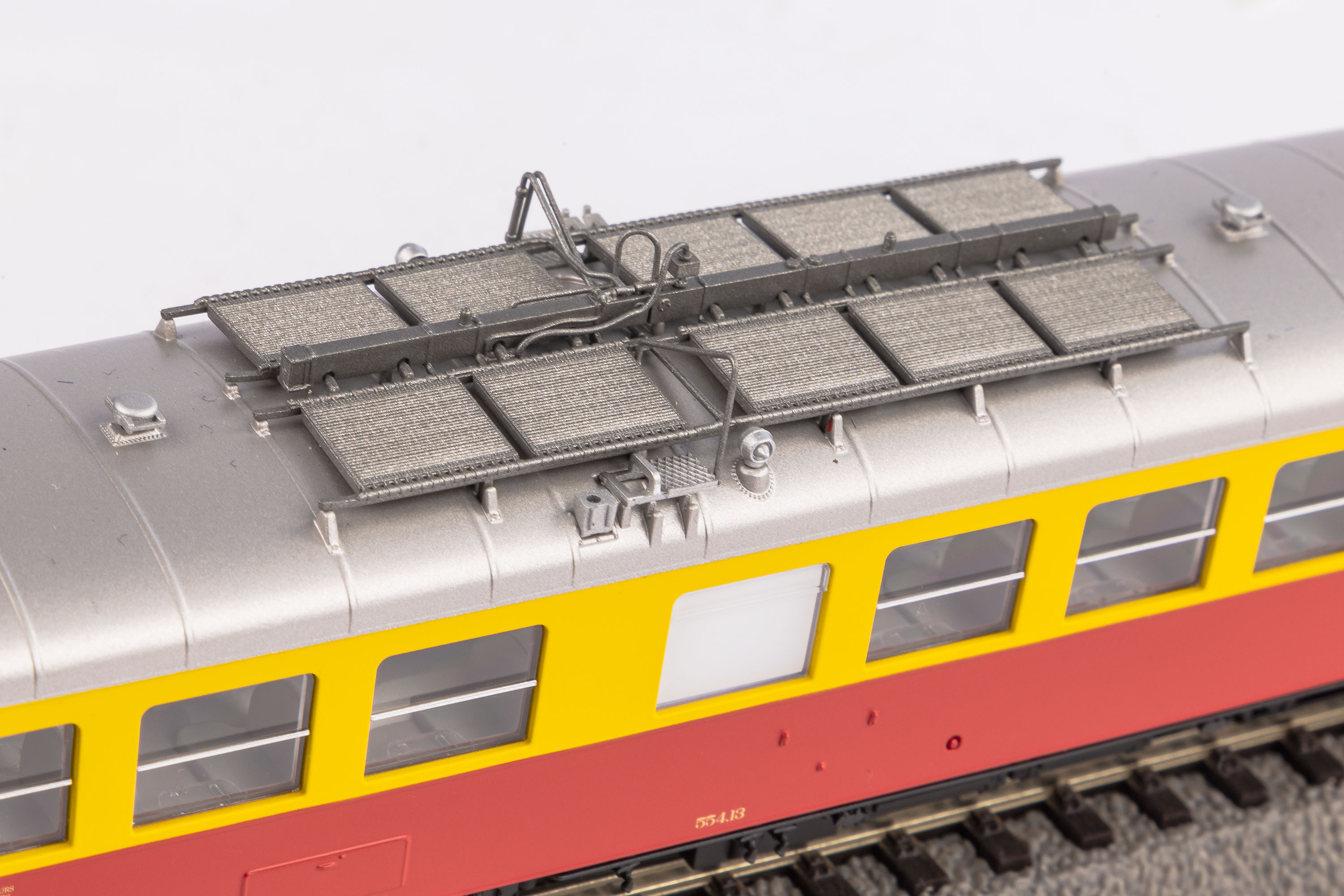 Druckvariante der Rh 554 der SNCB in Epoche III. Die PIKO Modelle der Autorail Brossel hinterlassen einen äußert sympathischen Eindruck. Die kurzen Wägelchen auf vier Achsen mit ebenso kurzen Drehgestellen sind ein Blickfang auf der Modellbahn. Dabei sind gerade die sich erheblich unterscheidenden Reihen 553 und 554 eine Fleißaufgabe für die PIKO Konstrukteure gewesen - so unterschiedlich sind die Fahrzeuge im Detail. Es hat sich gelohnt: Das Modell kann in allen Belangen überzeugen. Die äußerst fein gravierten Formen verleihen Wagenkasten, Wagenboden und Drehgestellen eine hervorragende optische Anmutung, die aufwendig angesetzten Details im Dachbereich wirken wie das berühmte Tüpfelchen auf dem i. Angetrieben wird das Modell von einem zuverlässigen PIKO Motor, der so dimensioniert ist, dass ein freier Blick durch die vielen Fenster des Modells besteht. Zwei Achsen des Modells sind angetrieben, die Stromabnahme erfolgt über alle vier Achsen. Die Soundvariante verfügt ab Werk bereits über einen passenden PluX22-SoundDecoder.
