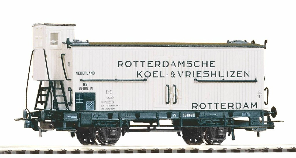 Feindetaillierter Kühlwagen der NS mit Bremserhaus, Speichenräder und Schriftzug "Koel- en Vrieshuizen" für die Epoche 3.