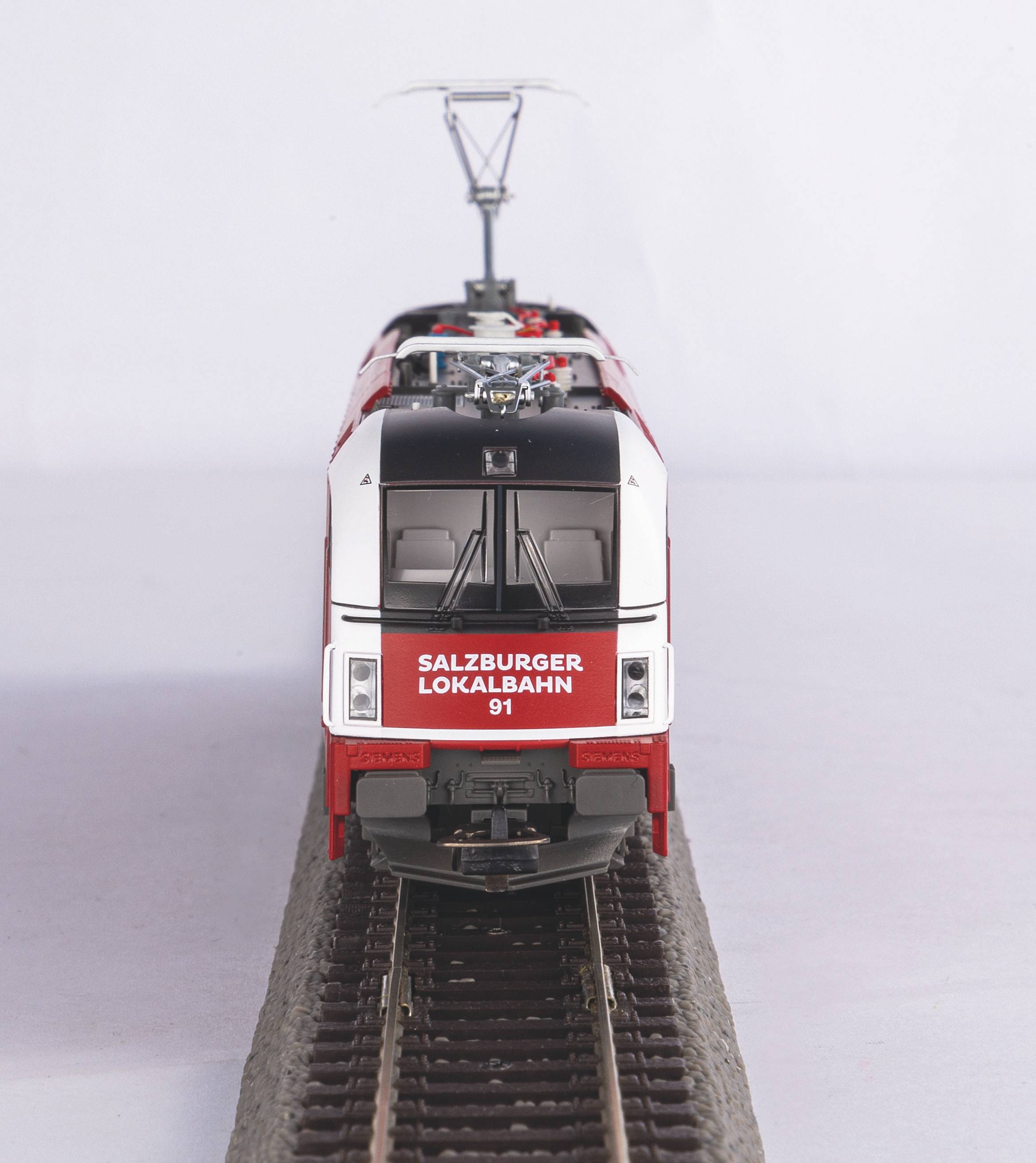 Druckvariante der Rh 1216 in der Ausführung der Salzburger Lokalbahn. Das Modell der Elektrolok besitzt in der Soundversion ab Werk einen PluX22-SoundDecoder.