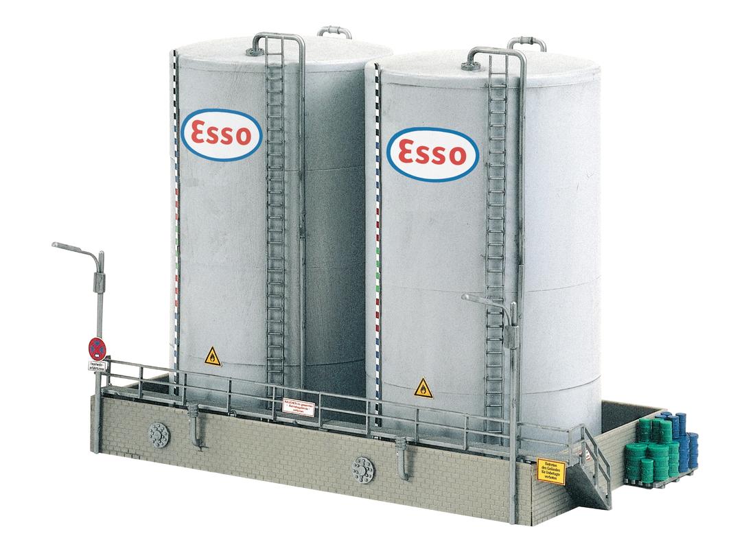 Diese Hochtanks bieten eine sinnvolle Ergänzung zum Tanklager J. Hennig, # 61104. Bei großen Raffinerien sind sowohl kleinere als auch größere Tanks vorhanden. Mit diesem teilweise gealterten Bausatz kann dies auch auf Ihrer Anlage verwirklicht werden. Nachbildung der Armaturen, der Ölauffangwanne und weiterer wichtiger Details sind vorhanden.