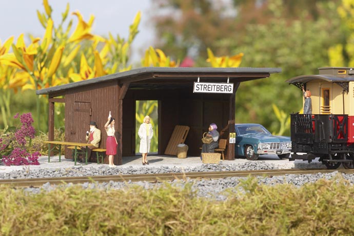 In der fränkischen Schweiz liegt im Wiesenthal der Haltepunkt Streitberg und bietet ankommenden und wartenden Reisenden einen Unterstand gegen zu starke Sonne oder Regen. Dem Bausatz liegen Bänke und eine Biertischgarnitur bei.