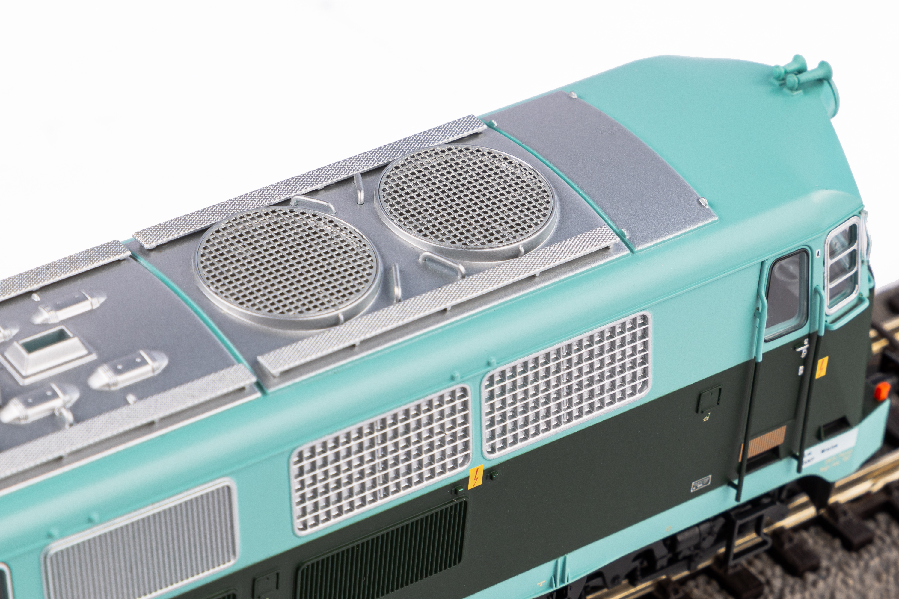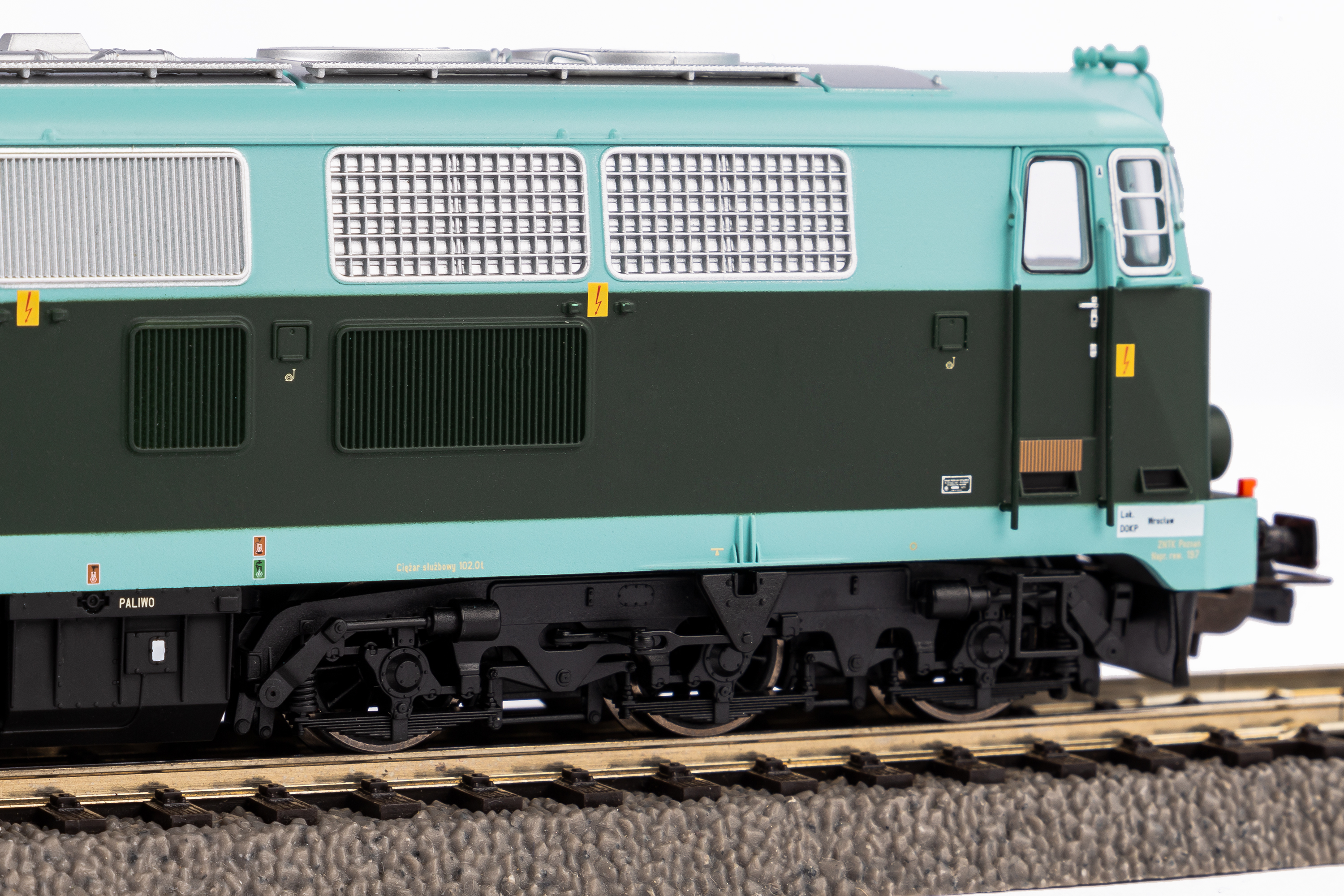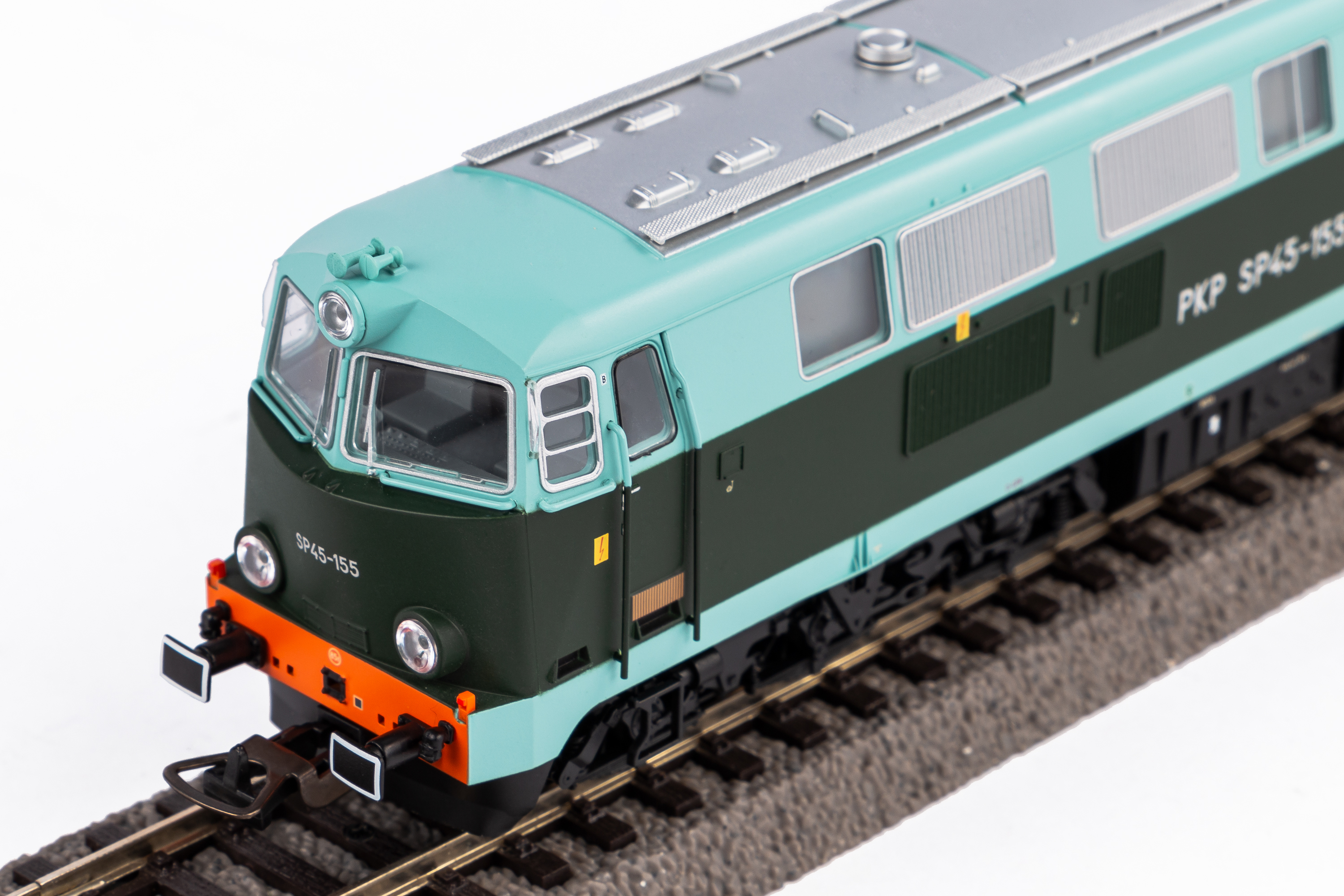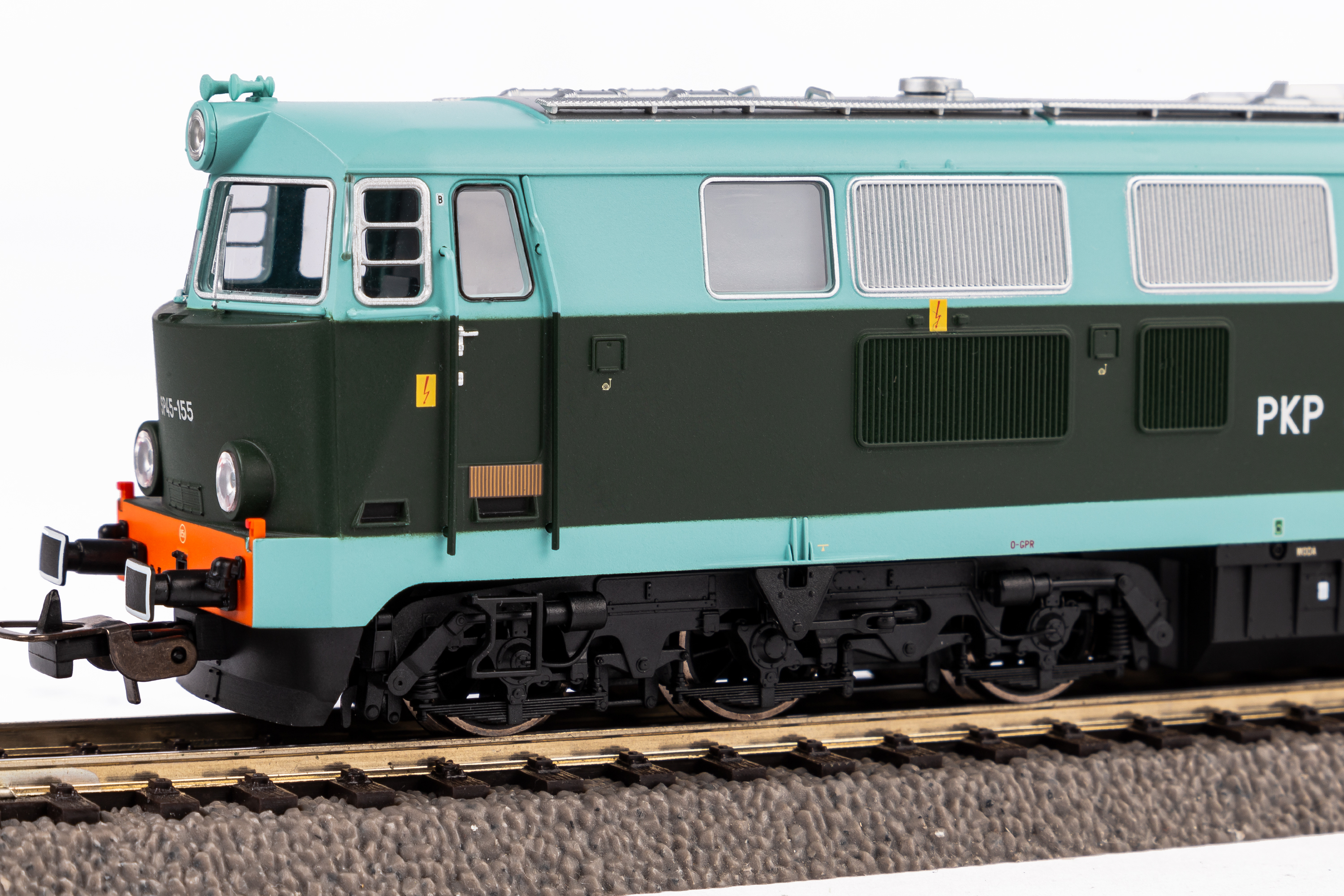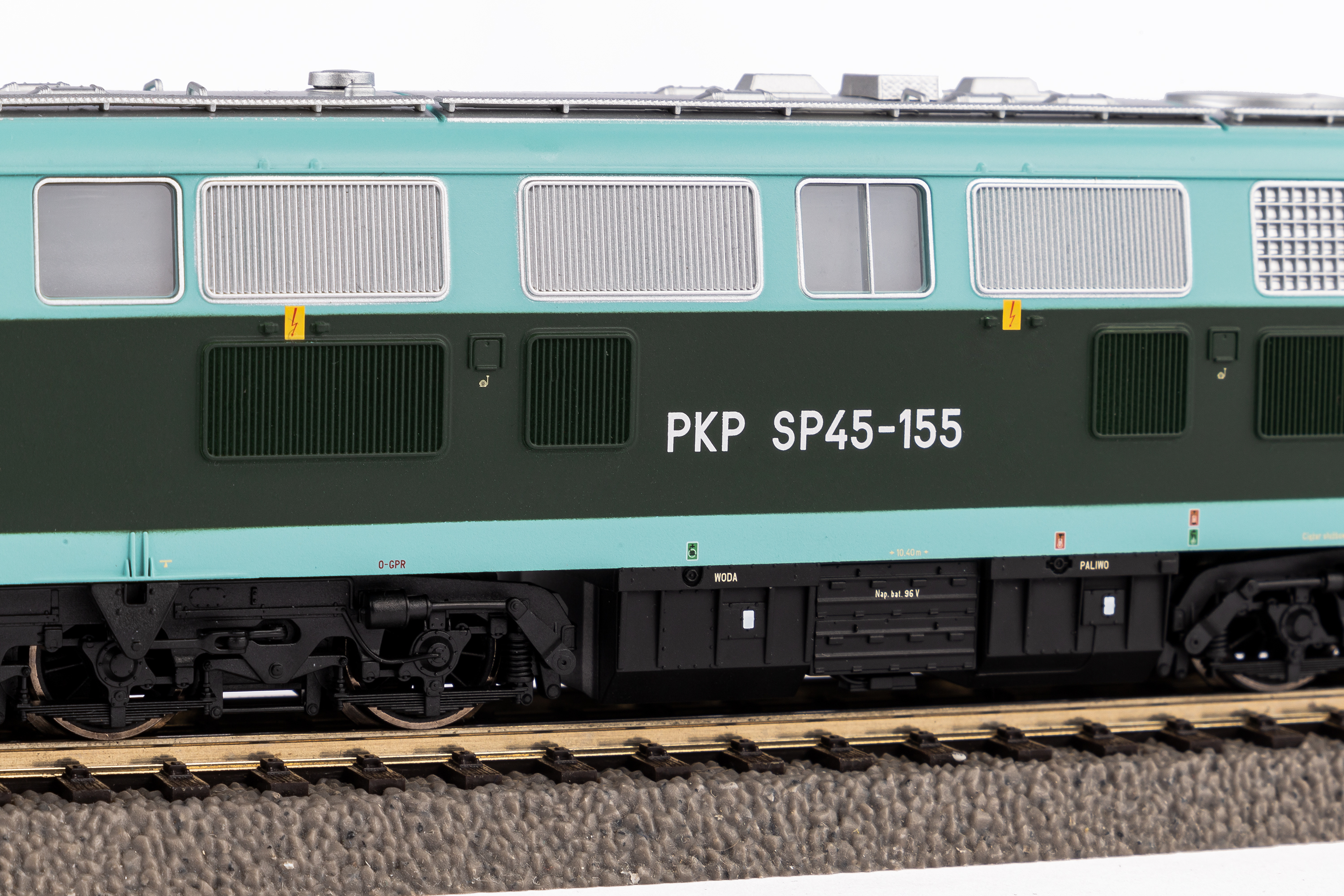 Variante der SU45 der PKP in der Epoche IV. Das PIKO Modell der Baureihe überzeugt mit vielen Details, u.a. extra angesetzte Griffe und Laufstege auf dem Dach, Nachbildungen der Rotorblätter unter feinen Lüftergittern, freistehenden Griffstangen an der Front und an den Türen und korrekten Darstellungen der Dämpfer an den exakt gravierten Drehgestellen. Die großräumigen Führerstände wurden originalgetreu nachgebildet. Scharf gravierte Drehgestelle zeigen alle Elemente des Originals, wie Federelemente und Achslagerdeckel. Die exakte Lackierung und Bedruckung geben authentisch ihre Vorbilder wieder. Die LED Front-, Schluss- und Führerstandsbeleuchtungen sind mit einem PluX22 Decoder digital schaltbar. Der Antrieb erfolgt über einen kraftvollen Motor mit zwei präzise ausgewuchteten Schwungmassen und sorgt für hervorragende Fahreigenschaften. Die Modelle sind mit einer PluX22-Schnittstelle für den Digitalbetrieb und eine unkomplizierte Nachrüstung mit einem SoundDecoder mit großem Lautsprecher vorbereitet. Geschlossene Schürzen zum optionalen Austausch liegen dem Modell bei.