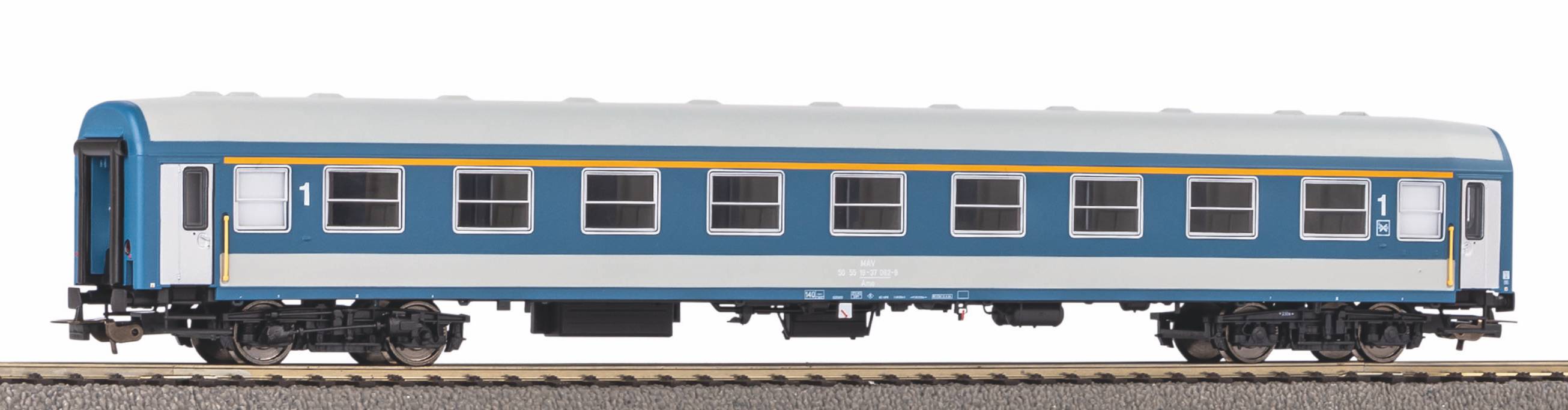 Druckvariante des Personenwagen 111A als 1. Klasse Personenwagen der MÁV in der Epoche IV. Der Wagen ist für die Nachrüstung einer Innenbeleuchtung (Art.-Nr. 56284) vorbereitet.