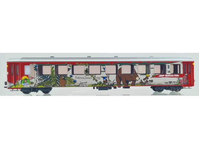 Personenwagen, 2.Klasse der Bauart EW I B2317 der RhB in der aufwändigen 'Bärenland' Lackierung.