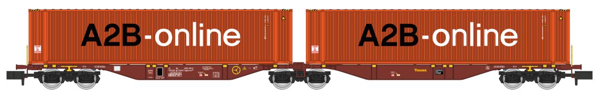 Doppelcontainerwagen Bauart Sggmrss 90 der TOUAX mit 2 x 45' A2B-online Container für die Epoche 6