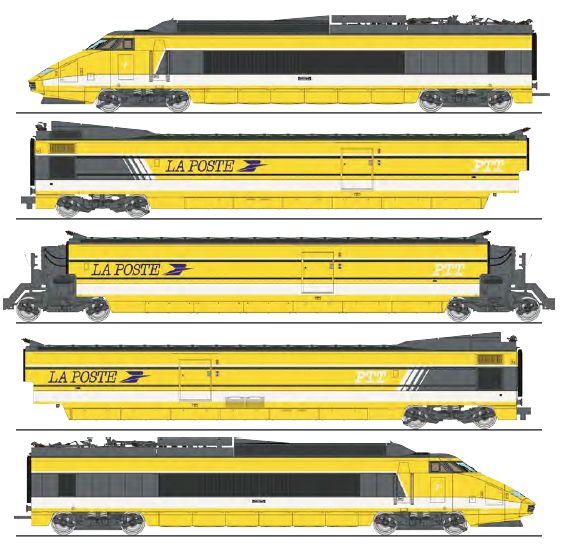 TGV PSE LA POSTE - (1984-1994), specific air suspension, 5-unit set Era.IV-V - Analog