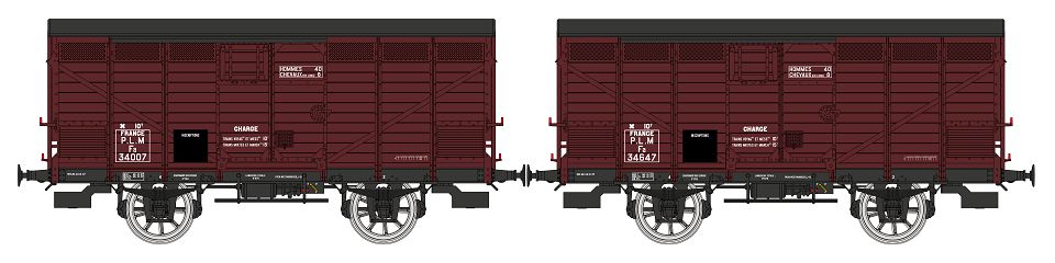 Set of 2 Vegetables wagons 1936 rebuilt PLM red Sideros, N° Fa 34007 & Fa 34647, PLM Era II