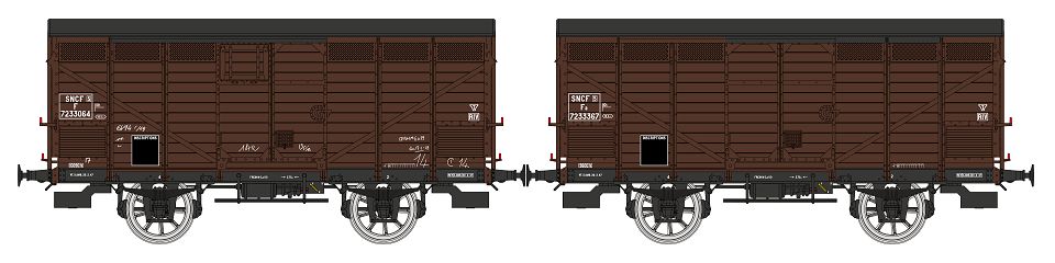 Set of 2 Vegetables wagons 1936 rebuilt PLM, N° F 7233064 & N° F 7233367, SNCF Era III A