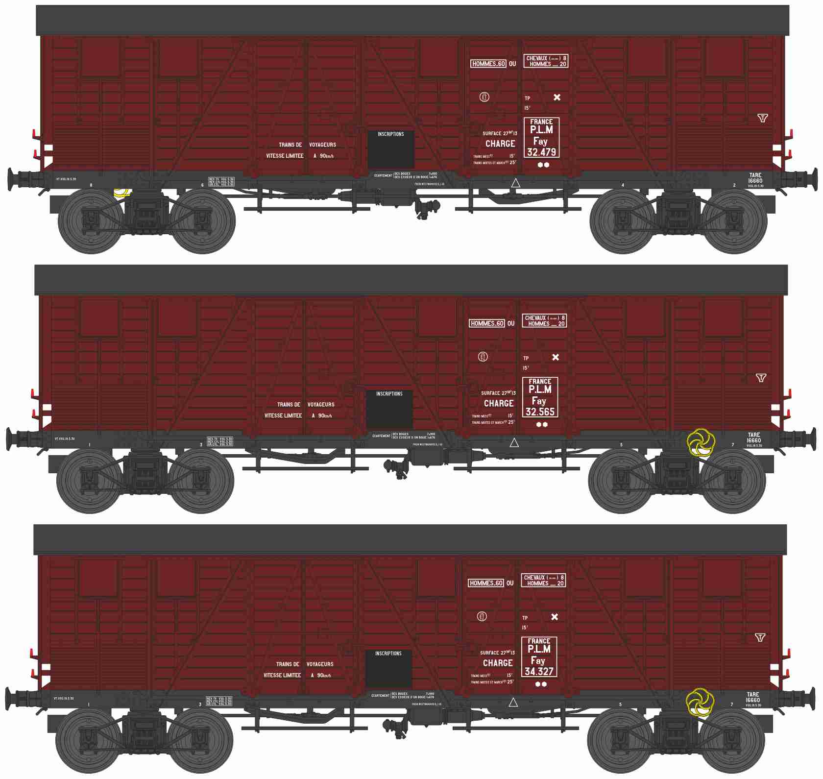 Set of 3 covered goods wagon with 4 doors (transport og fruits and vegetables) PLM Era. II