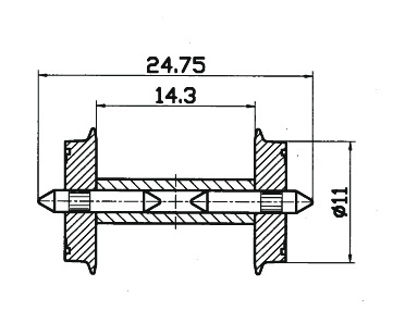 H0-Normradsatz für Gleichstrom mit geteilter Achse.