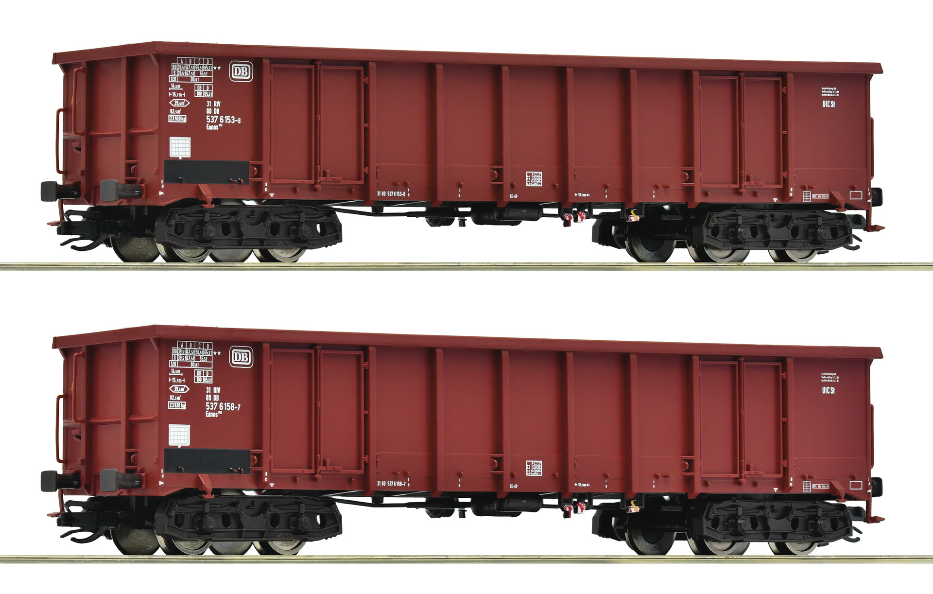 Wagenset mit zwei 4-achsigen offenen Güterwagen, Gattung Eanos, der Deutschen Bundesbahn.