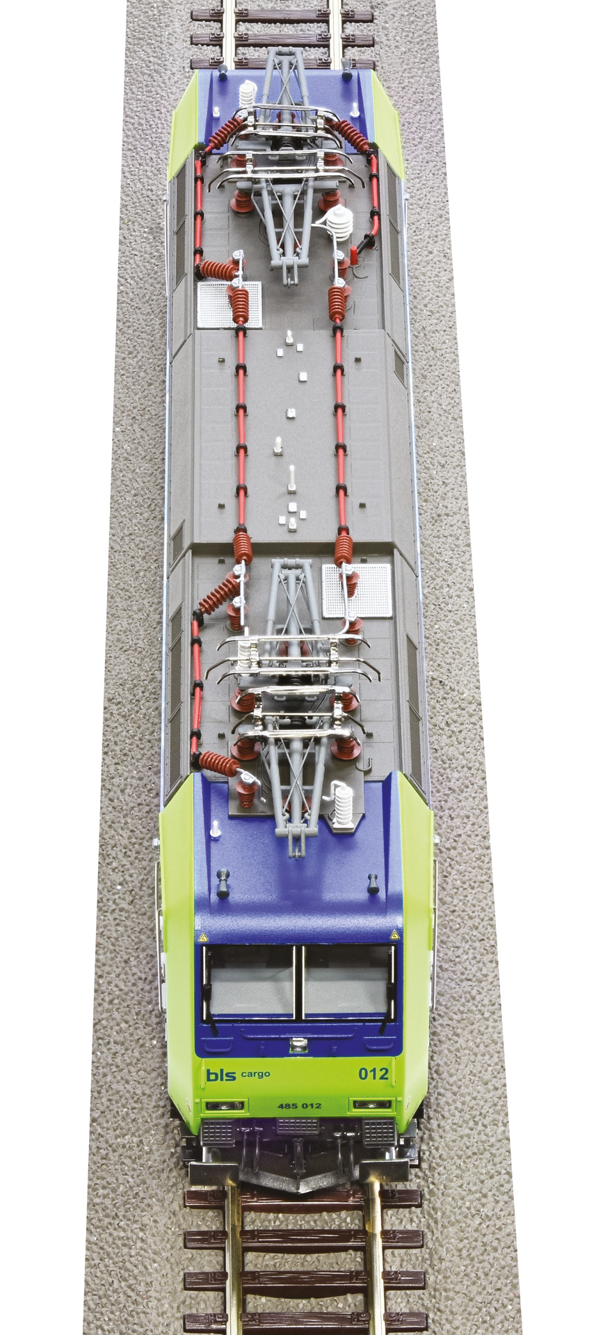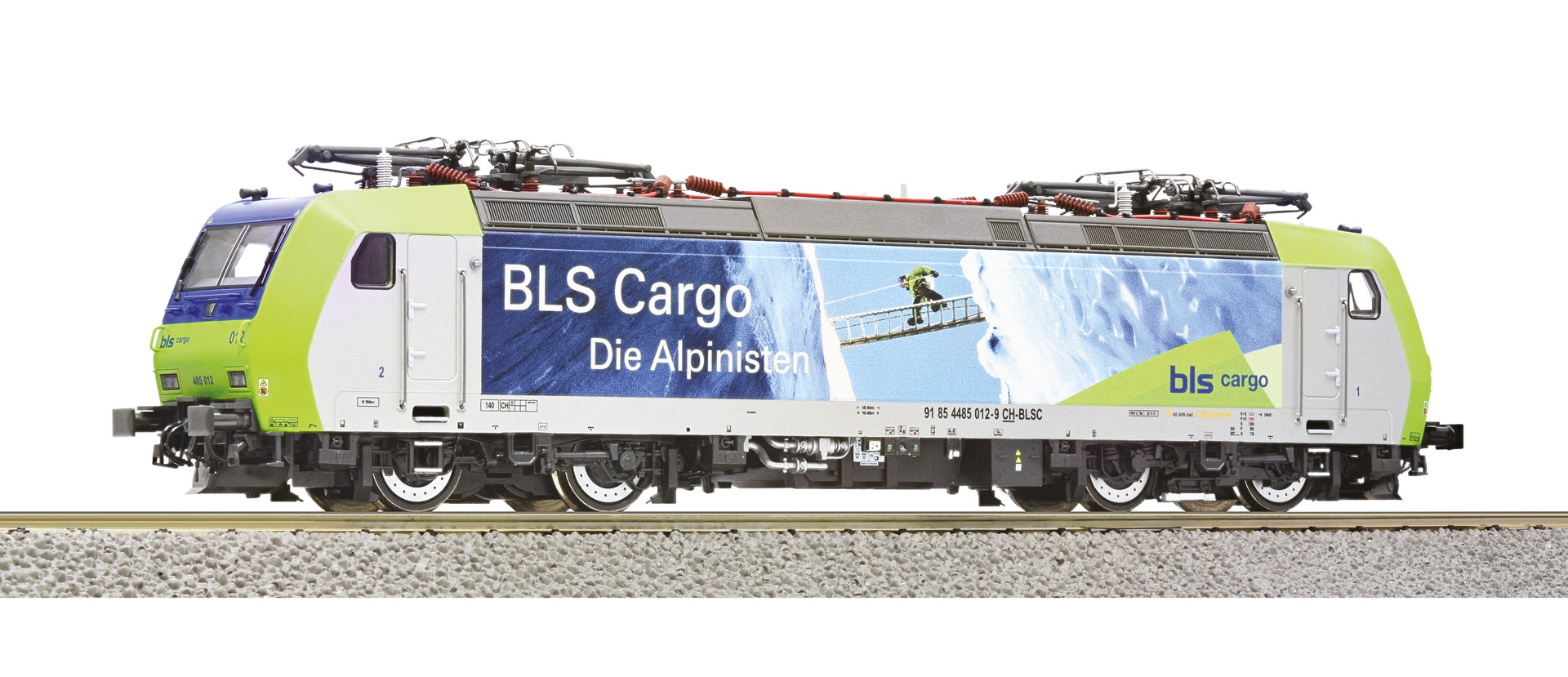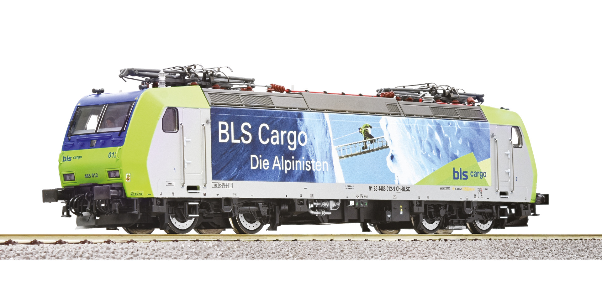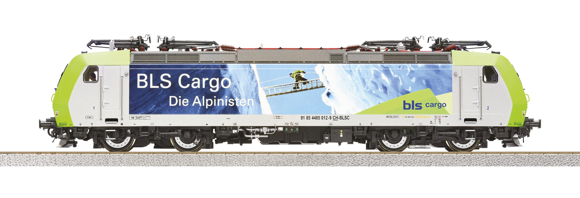 Elektrolokomotive 485 012 der Schweizer Bahngesellschaft BLS Cargo. - Ausführung im aktuellen Alpinisten-Design - Stromabnehmer mit innovativer Befestigung - Extra angesetzte Steckteile - Schienenräumer am Chassis befestigt - Im Digitalbetrieb mit schaltbarem Fernlicht und einzeln schaltbarem Spitzen- oder Schlusslicht 2001 beschloss die BLS Lötschbergbahn AG, zehn Traxx-Lokomotiven für den grenzüberschreitenden Güterverkehr zu bestellen. Die Lokomotiven der BLS Cargo mit der Schweizer Bezeichnung Re 485 sind technisch identisch mit der Baureihe Re 482 von SBB Cargo und den Maschinen der Baureihe 185 von DB Schenker mit zusätzlichem Schweiz-Paket. Mit der Auslieferung zwischen Dezember 2002 und Mitte 2003, wurden die verbliebenen Ae 4/4 ausgemustert. Die neuen Maschinen werden vor allem vor Transitgüterzügen von und nach Deutschland eingesetzt.
