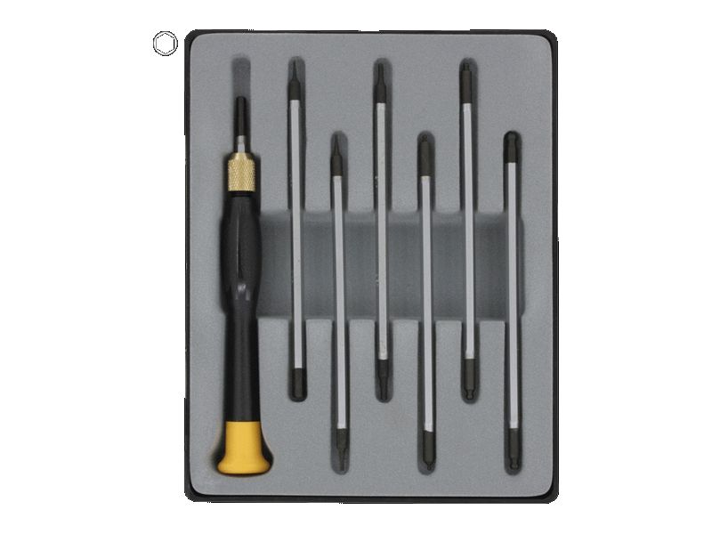 Sechskant Kugelkopfsechskant Umsteckset - Hochwertige Schraubendreher mit jeweils 7 Umsteckklingen mit Griff, in praktischer Kunststoffbox mit transparentem Deckel.- Sechskant 0,7 / 0,9 / 1,3 / 1,5 / 2,0 / 2,5 / 3,0 / 4,0 mm- Kugelkopf Sechskant 1,3 / 1,5 / 2,0 / 2,5 / 3,0 / 4,0 mm