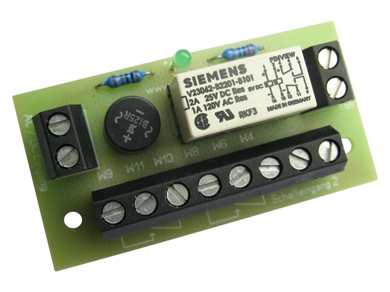 Ein großer Vorteil bei diesem Baustein ist, dass das Relais in einem Sockel steckt und nicht angelötet ist. Somit ist das Relais jederzeit problemlos auswechselbar.