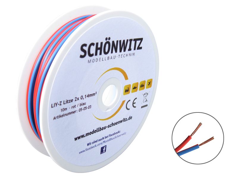 Technische Daten:- Typ - Zwillingsleitung LIYZ 2 x 0,14qmm