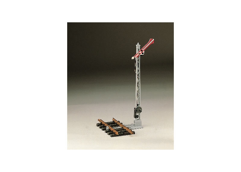 Dieses vorbildgetreue Signal mit Handbedienung eignet sich besonders für kurzfristig aufgebaute Anlagen. Das Signal wird einfach an jedes beliebige LGB-Gleis angesteckt. Höhe 300 mm.