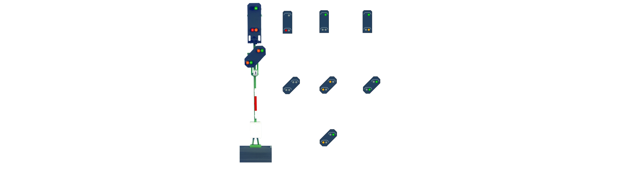 Modell: Mit 2 integrierten Signalelektroniken und 1 separaten Signaldecoder. Vorsignal für alle Hauptsignale verwendbar. Steuerung aller Funktionen über zugehörigen Signaldecoder im Digital-System oder mit Stellpult 72760 bei konventionellen Anlagen möglich. Signaldecoder kann unter dem C-Gleis oder unter der Anlage eingebaut werden. Für Digital-Betrieb können die Konfiguration und die Adressen beider Signale vor dem Einbau zugewiesen und getestet werden. Am Signaldecoder Anschlüsse für die Zugbeeinflussung und für 1 weiteres Vorsignal. Höhe ohne Sockel 78,0 mm.