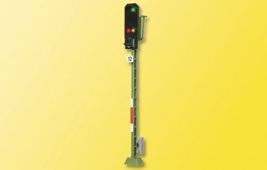 Signal der Einheitsbauart. Messingmast in filigraner Fotoätztechnik hergestellt. Originalgetreue Lackierung. Für alle Analog- und Digitalsysteme geeignet. Mit Patentsteckfuß. Sehr einfache Montage, sehr einfacher Anschluss. Mit 3 LEDs, wartungsfrei. Signalbilder Hp0, Hp1 und Hp2. Passendes Steuermodul: Art. 5222. Höhe: 7,9 cm.