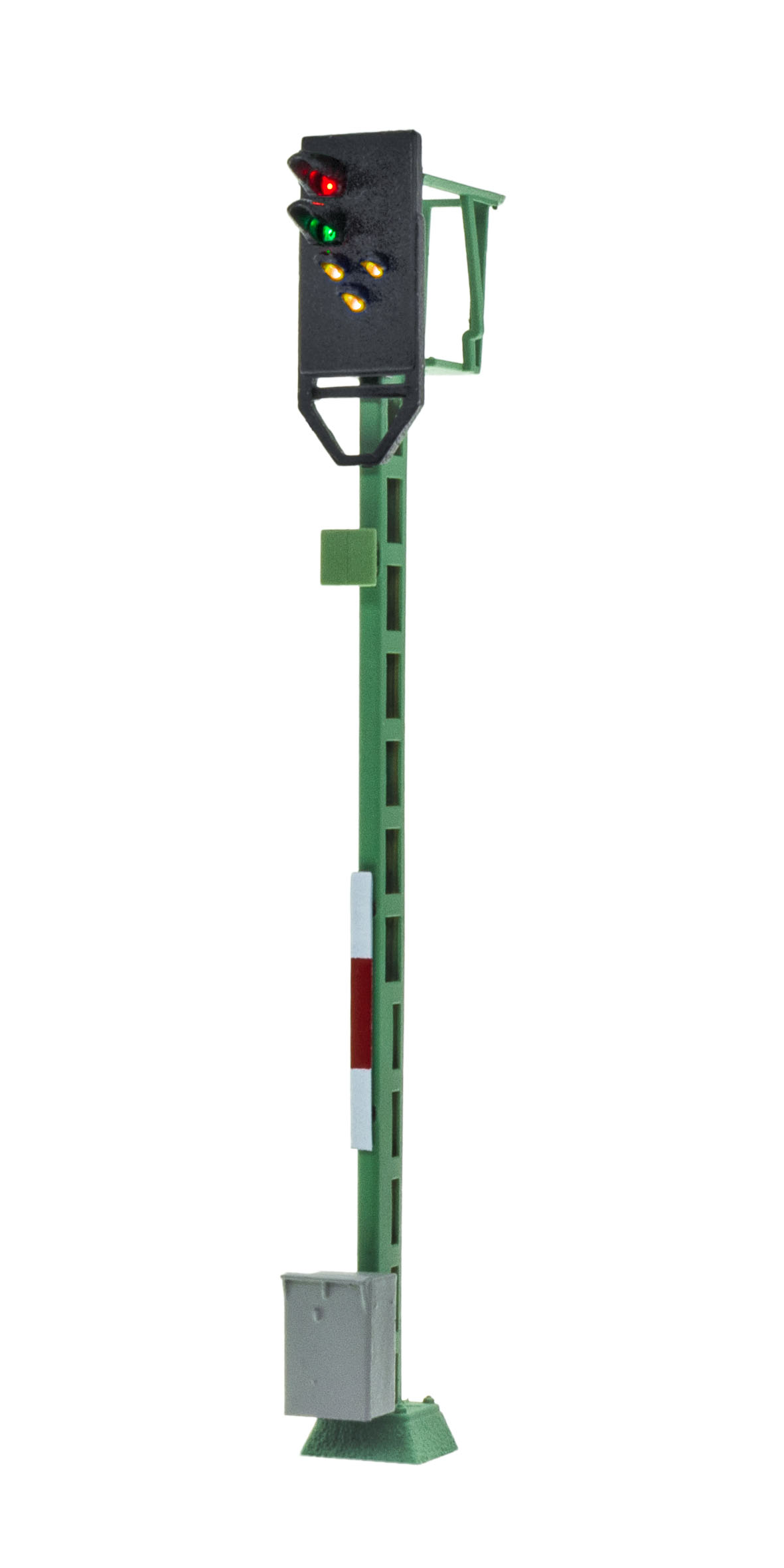 Der Messingmast wird in filigraner Fotoätztechnik hergestellt. Originalgetreue Lackierung. Für alle Analog- und Digitalsysteme geeignet. Wartungsfrei dank LED-Beleuchtung. Einfache Montage und Anschluss mit Steckfuß.