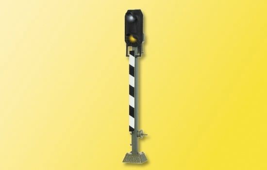 Für Bahnübergänge mit Blinklicht. Mit filigranem Messingmast in originalgetreuer Lackierung und Patentsteckfuß für einfache Montage. Zum Anschluss an das Blinkgerät Art. 5065. Mit 2 LEDs, wartungsfrei. Signalbild Bü101. Höhe: 5 cm.
