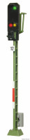 Signal der Einheitsbauart. Filigraner Messingmast in originalgetreuer Lackierung. Flexible Montage durch beiliegende Schrauben und Befestigungsclip für Teppichbahnen. Wartungsfrei dank LED-Beleuchtung. Mit 3 LEDs. Signalbilder Hp0, Hp1 und Hp2. Passendes Steuermodul: Art. 5222. Höhe: 15,5 cm.