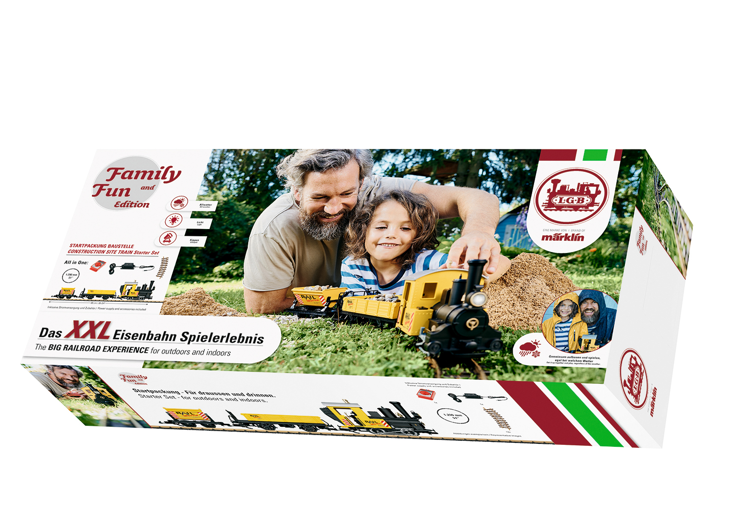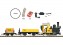 Dieses Startset enthält einen Baustellenzug, bestehend aus einer Tenderlok, einem Niederbordwagen