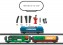 Märklin my world - Startpackung Containerlogistik - Der kraftvolle LogistikprofiIm Hafen liegt das Schiff vor Anker und wartet schon auf deine Ladung. Dank der kraftvollen Elektrolok äVectron“ transportierst du deine Fracht mit dem Güterzug schnell und pünktlich zur Verladestation. Kaum hat der Ozeanriese sein Ziel erreicht, bringt dein Güterzug alle Waren zum finalen Bestimmungsort.Vorbild: Güterzug bestehend aus einer Elektrolokomotive, einem Containertragwagen beladen mit zwei 20-Fuß-Containern und einem Kranwagen.Modell: Lokomotive mit Akkuantrieb und Magnetkupplung am hinteren Fahrzeugende. Motor, Akku und die gesamte Elektronik sind für Kinder unzugänglich verbaut. Die Lok kann mit dem mitgelieferten USB-Ladekabel aufgeladen werden. Jeweils 3 Geschwindigkeitsstufen bei Vorwärts- und Rückwärtsfahrt, sowie 3 Soundfunktionen und ein Dreilicht-Spitzensignal, sind über den kindgerechten Märklin Power Control Stick steuerbar. Containerwagen und Kranwagen mit Magnetkupplungen. Die kindgerechten, stabilen Container können geöffnet und beladen werden. Ein fest verbautes Metallteil in den Containern ermöglicht die magnetische Verladung mit dem beiliegenden Kranwagen. Der Kranwagen verfügt über 4 klappbare Verladestützen. Der Kran ist drehbar und der magnetische Verladehaken lässt sich per Handkurbel auf und ab bewegen.Länge des Zuges 55 cm.Inhalt: 14 gebogene Kunststoffgleise, 12 gerade Kunststoffgleise, 1 Weiche links, 1 Weiche rechts und ein kabelloser, handlicher Märklin Power Control Stick. Ein USB-Ladekabel für die Lokomotive und 2x AAA Batterien sind im Lieferumfang enthalten. Zudem liegt ein Stickerbogen mit verschiedenen Bahngesellschaften und Aufklebern zum Bekleben bei. Erweiterbar mit den Kunststoffgleisen aus dem Märklin my world Sortiment.Passend zur Themenwelt Containerlogistik ist ein Hafenkran und Frachtschiff unter der Artikelnummer 72223 erhältlich.