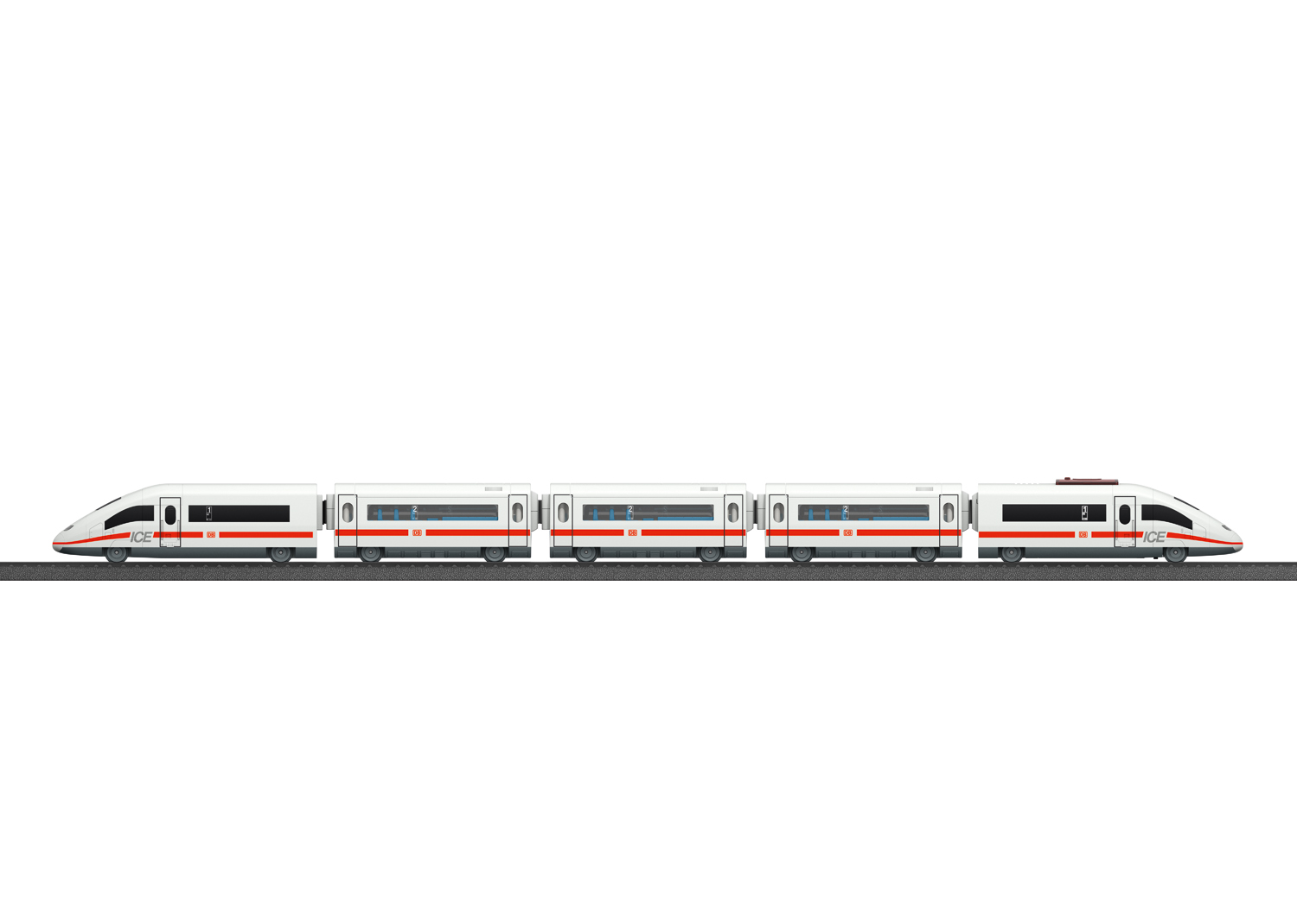 Märklin my world - Startpackung ICE 3 für Kinder ab 3 Jahren Willkommen in der Welt von Märklin my world. Die Märklin my world Eisenbahnwelt, bietet den altersgerechten Einstieg in die Welt der Eisenbahnen zur bewährten Märklin Qualität. Die kindgerecht gestalteten Lokomotiven und Wagen sind leicht zu handhaben und bieten vom ersten Moment an große Spielfreude. Das umfangreiche Gleis- und Zubehörsortiment bietet unendliche, kreative Möglichkeiten in die Welt rund um die Eisenbahn einzutauchen und die Realität im Kleinen nachzuerleben! Vorbild: Einem ICE 3 nachempfundenen Hochgeschwindigkeitszug Großes VorbildBahnhöfe und das Einfahren von Zügen bringen Kinderaugen zum Leuchten. Das kann nun auch im Kinderzimmer passieren, denn die Märklin my world Startpackung “ICE 3ö enthält einen 5-teiligen Hochgeschwindigkeitszug mit 63 cm Länge, der mit seinem schnittigen Design über die selbst zusammengesteckte Strecke rast. Die abnehmbaren Dächer der drei Zwischenwagen sorgen für viele Spielmöglichkeiten. Die detailreiche Gestaltung des Schnellzugs orientiert sich am Original und wird Fan-Herzen höherschlagen lassen. Die verschiedenen Weichen bieten noch mehr Spielraum beim Zusammenbau. Stück für Stück entstehen großartige Streckenverläufe durch das Spielzimmer, die sich mit Sets separat erhältlicher Kunststoffgleise noch erweitern lassen. Das Zusammensetzen der einzelnen Teile hilft dabei, die motorischen Fähigkeiten und das Verstehen von Zusammenhängen zu schulen.Volle Kontrolle mit dem Märklin Power Control StickDer kabellose Märklin Power Control Stick kann von Kindern mit nur einer Hand bedient werden. Damit lässt sich der Zug vorwärts und rückwärts in jeweils drei Geschwindigkeitsstufen fahren. Außerdem kann der Zug auf Knopfdruck am Control Stick verschiedene Soundeffekte abspielen und sein Zweilicht-Spitzensignal anschalten.Sicheres Spielen mit MärklinDamit auch schon die Kleinsten mit dem Modellzug von Märklin spielen können, steht Sicherheit an oberster Stelle. Die einzelnen Abteile der Züge sind über sichere Magnetkupplungen miteinander verbunden, die keine kleinen Einzelteile haben und einfach zu bedienen sind. Der motorisierte Triebkopf mit wiederaufladbarem Akku ist kindersicher gestaltet und daher das perfekte Spielzeug für den Einstieg in die Modellzugwelt ab 3 Jahren. Der Akku mit passendem Ladekabel und die Batterien für den Power Control Stick (2x AAA-Batterien) sind im Lieferumfang enthalten, sodass der Spielspaß direkt losgehen kann. Die einzelnen Schienenteile lassen sich ganz einfach zusammenstecken und alle Teile des Spielsets sind besonders robust gestaltet. Somit ist das Spielset perfekt für große und kleine Fans von Zügen und Modelleisenbahnen geeignet.
