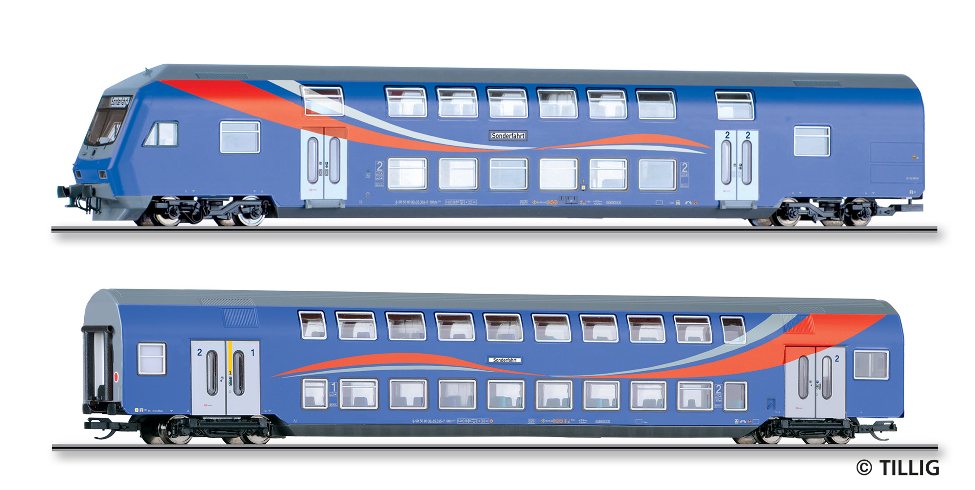 Reisezugwagenset der SRI, bestehend aus einem Steuerwagen DBzf 761 und einem Doppelstockwagen 1./2. Klasse DABz755