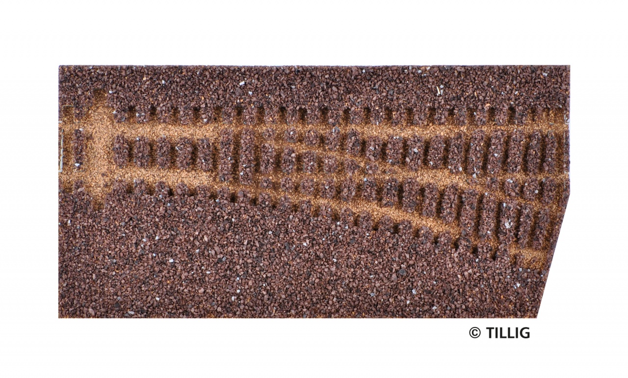 Gleisbettung Elitegleis dunkel (braun), für rechte Weiche 15°.