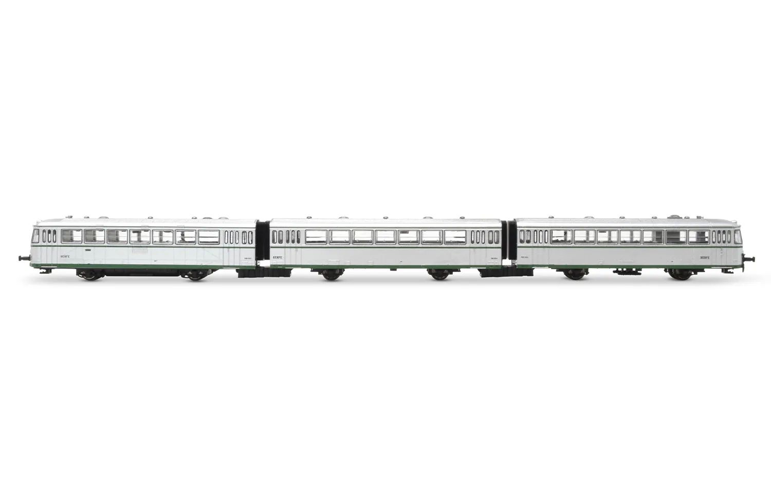 Triebwagen Serie 591 3-tlg der RENFE für die Epoche 4. Betriebsnummer: 591.300. Modelldetails: - LüP: 256 mm - Lichtwechsel weiß/weiß - Kupplungskinematik an beiden Fahrzeugenden - Motor mit Schwungmasse - Digitale Schnittstelle NEM 662 (Next18)