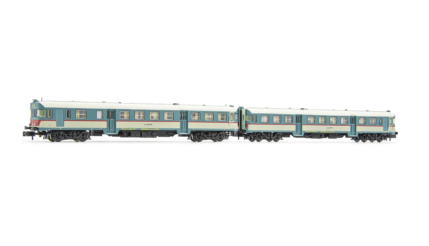 RENFE, 2-tlg. Dieseltriebwagen ALn 668 Serie 1900 in original FS-Lackierung, gewölbte Stirnfenster, Ep. IV