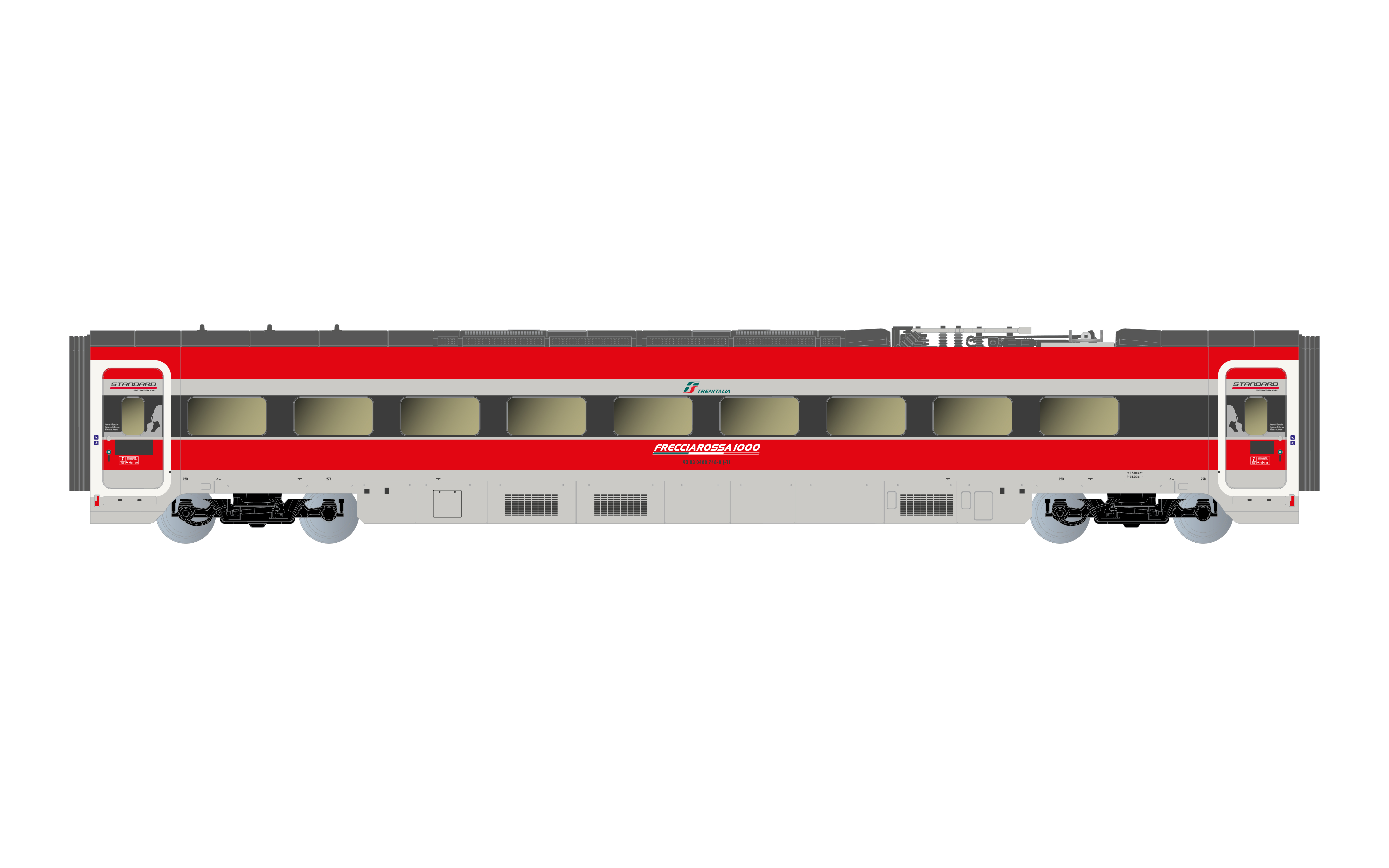 FS Trenitalia, 4-tlg. Grundset des Hochgeschwindigkeitszugs äFrecciarossa 1000“, mit äLe plaisir d'un voyage nouveau“-Werbung, Ep. VI, mit DCC-Decoder