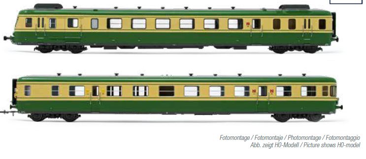 SNCF, RGP2 diesel railcar, motor unit + trailer in re-built version, green/beige livery, ep. IV