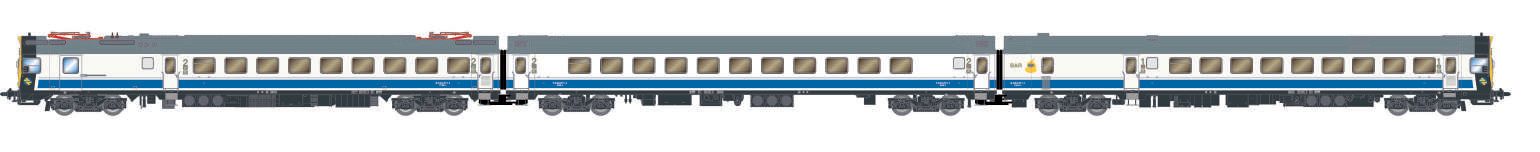 RENFE, elektrischer Triebzug der Reihe 444, Triebzug 444-011 in blau-weißer Farbgebung, Ep. V, mit DCC-Decoder