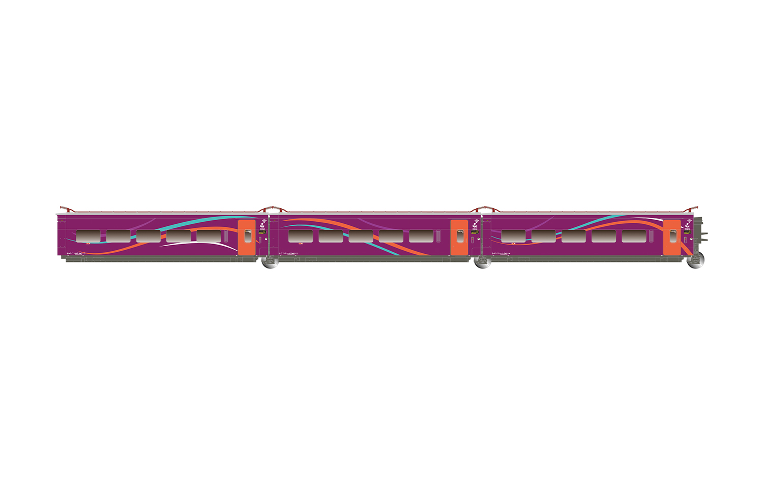 RENFE, 3-tlg. Ergänzungsset des Hochgeschwindigkeitszugs äAVLO“, Nr. 1/3, violette Farbgebung, Ep. VI