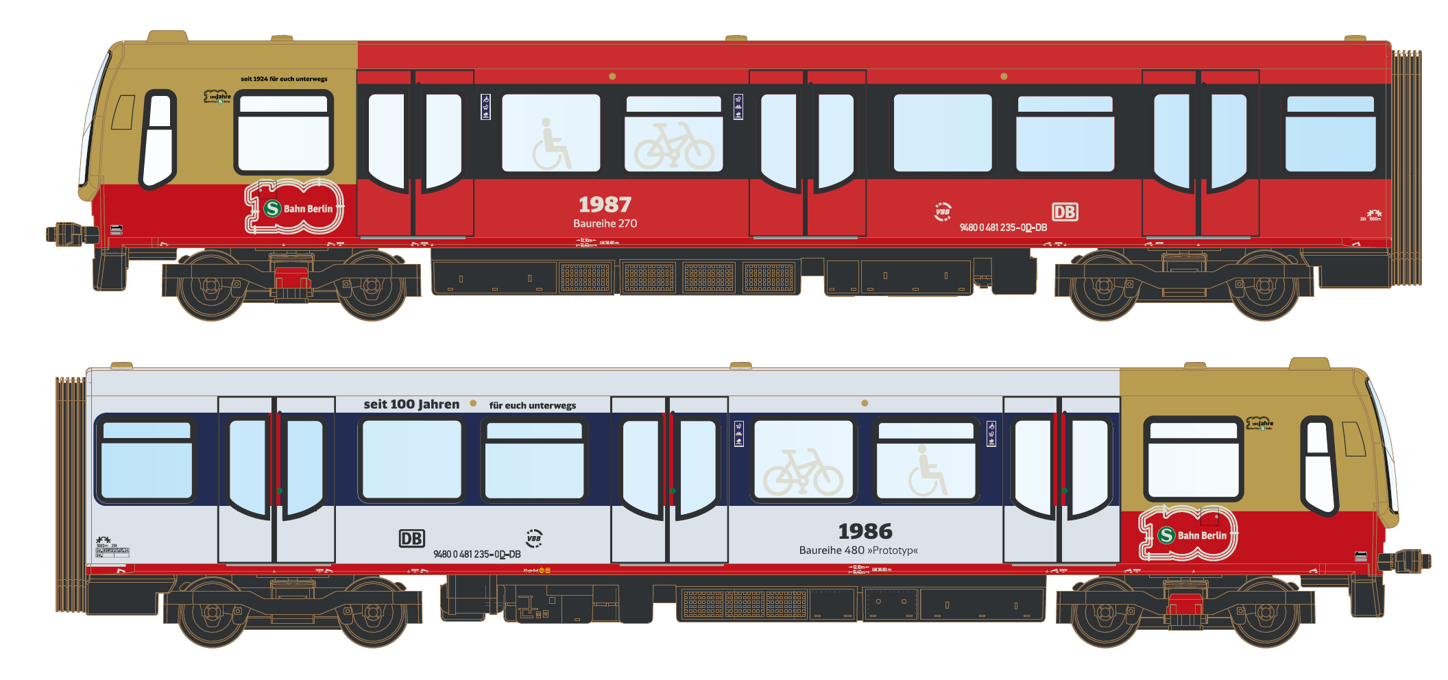 2024 jährte sich das 100-jährigen Jubiläum der Berliner S-Bahn, wobei die Baureihe 481/482 eine wichtige Rolle spielte: Ein modernisierter Zug dieser Baureihe wurde mit Folierungen in verschiedenen historischen S-Bahn-Farben beklebt und als Jubiläumszug eingesetzt, um die Geschichte der S-Bahn zu repräsentieren. Rollfähiges Souvenirmodell.