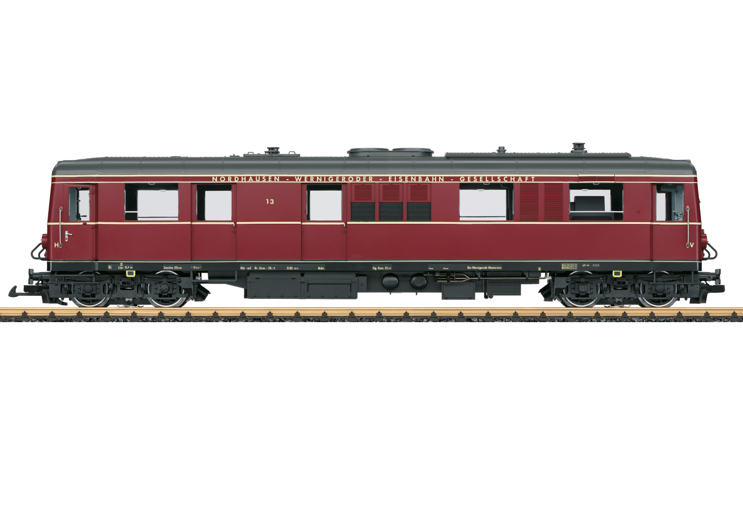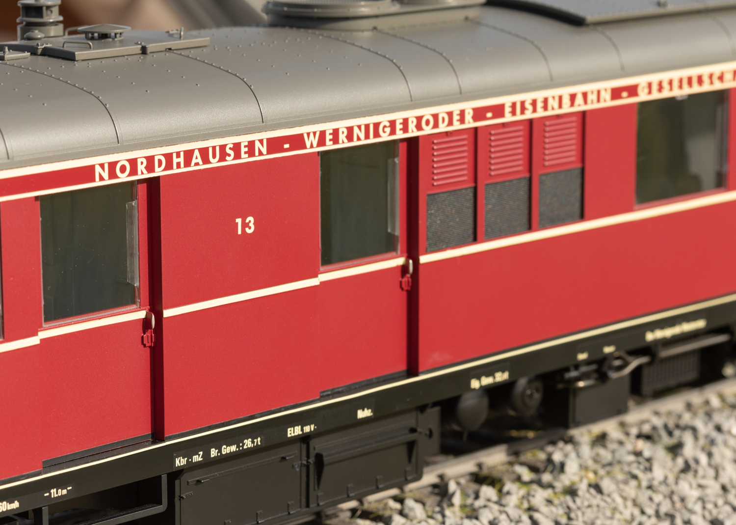 Vorbild: In den 30er Jahren des vergangenen Jahrhunderts beabsichtigte die damalige Nordhausen-Wernigerode Eisenbahn AG (NWE) ihren Triebfahrzeugpark zu modernisieren. Dazu sollten neben neuen Dampflokomotiven auch dieselelektrische Triebwagen beschafft werden. Nachdem bereits 1935 ein erster Triebwagen gekauft wurde, lieferte die Waggonfabrik Wismar 1940 zwei weitere leistungsstärkere Triebwagen, die als reine Gepäcktriebwagen ausgeführt wurden. Mit einem Dienstgewicht von 32 Tonnen, einer Leistung von 516 PS und einer Höchstgeschwindigkeit von 60 km/h waren die beiden Gepäcktriebwagen etwas stärker als der Personentriebwagen und konnten daher 4 statt 3 Wagen befördern.1949 übernahm die Deutsche Reichsbahn beide Triebwagen als VT 137 565 und VT 137 566. Bis zur Anlieferung der Neubaudampflokomotiven Ende der 50er Jahre trugen beide Triebwagen die Hauptlast des Brockenverkehrs gemeinsam mit den schweren Dampflokomotiven der ehemaligen NWE. Danach wurden die Triebwagen in untergeordnete Dienste abgedrängt. VT 137 565 wurde 1967 ausgemustert und 1968 in Wittenberge verschrottet. VT 137 566 erhielt 1970 noch die neue Nummer 187 025 und wurde im Verlaufe der 70er Jahre abgestellt. So übernahm die HSB den Triebwagen 1993. 1995 wurde er aufgearbeitet und stand seitdem wieder im Ursprungszustand als T3 der NWE für Sonderfahrten zur Verfügung. Bei diesem Umbau wurde der ursprüngliche Motor durch einen neuen Cummins-Motor mit 328 PS ersetzt. Da der Triebwagen nur noch im Sonderverkehr und nicht mehr als Schleppfahrzeug eingesetzt wurde, genügt diese Leistung vollauf, dafür sind für den modernen Motor jederzeit Ersatzteile verfügbar.Derzeit ist der Triebwagen von der Instandsetzung zurückgestellt und für eine Aufarbeitung vorgesehen. Neukonstruktion