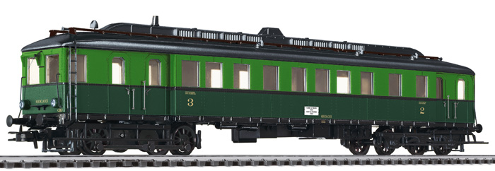 Dieseltriebwagen Serie 600 2./3.Kl. der SNCB. Betriebsnummer: 600.03. Fahrgestell und Räder aus Metalldruckguss, 3-poliger Motor mit Schwungmasse, Haftreifen, digitale Schnittstelle für steckbaren 21-poligen Decoder, Kurzkupplungskinematik, Kupplungsaufnahme nach NEM 362, Zweilicht-LED-Spitzensignal weiß/rot mit der Fahrtrichtung wechselnd, empf. Mindestradius 360 mm, LüP 242 mm.