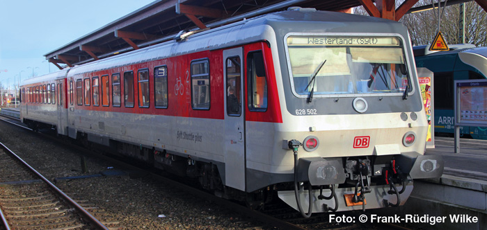 Unser Vorbild, der eigens für diesen Zweck modernisierte und mit neuer Lackierung versehene 628 502 / 928 502 mit dem Beinamen ,"Keitum" und der Zugzielanzeige, "Westerland (Sylt)" verkehrt seit 2015 als "Sylt Shuttle Plus". Diese Züge werden in Niebüll an die Autozüge des 39 km langen Sylt-Verkehrs zwischen Sylt und dem Festland an- (bzw. ab-) gekuppelt und dann als eigenständiger Zug Richtung Husum und teilweise auch nach Hamburg durchgebunden. Die Züge bieten Platz für Fahrräder und bis zu 140 Fahrgäste, sind mit einem 1.-Klasse-Abteil versehen und verkehren überwiegend halbstündlich.