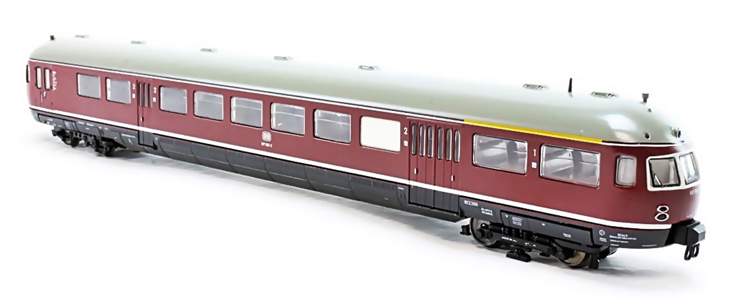 Vorbild: Elektrischer Akkutriebwagen BR 517 002-2 der DB. Baujahr 1952. Bekannt als Limburger Zigarre aufgrund seiner angestammten Beheimatung im hessischen Limburg. Einsatzgebiet: Lahntalbahn Gießen-Koblenz, von Limburg abzweigende Strecken nach Siershahn, Altenkirchen und Westerburg, sowie ins Aartal nach Wiesbaden und Bad Schwalbach. Modell: Zwei Achsen angetrieben, Lichtwechsel weiß/rot LED, Dig. Schnittstelle nach NEM (8polig). Gehäuse und Fahrwerk in Metallausführung. Verpackung in edler Zigarren-Holzkiste mit Samtausschlag, Platz für Steuerwagen ist vorhanden.