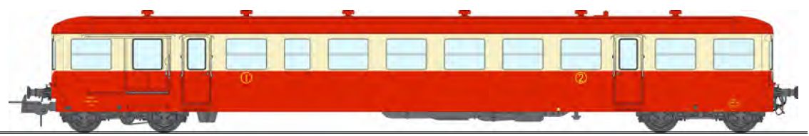 AC Digital Einheitsbeiwagen XR-7487 der SNCF, kleiner Gepäckraum, rote Oberlichter, rot / creme, Dach rot, LILLE, für die Epoche 4.