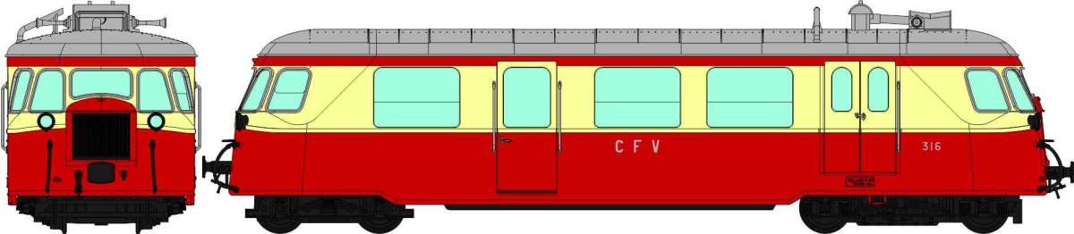 DCC Sound, BILLARD A80 D des CFV Nr. 316, 2 Scheinwerfer, Rubin / Creme, Aluminiumdach, Touristic Ep. IV