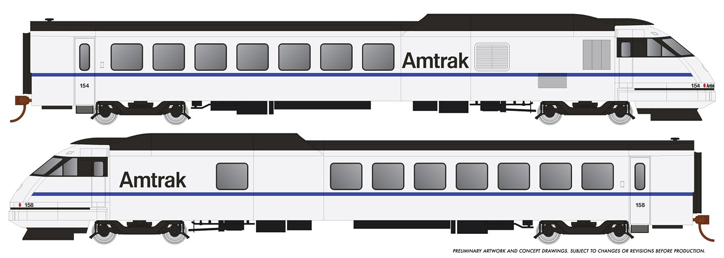 Turboliner DC AMTK X2000 - RTL Turboliner - 2 Power Cars - Standard DC -- Amtrak 154, 158 (X2000 Demonstrator Scheme, white, balck)