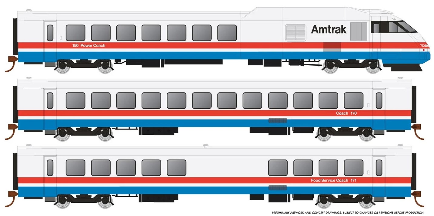 DCC Sound - Turboliner DCC AMTK Set 3 - RTL Turboliner 5-Unit Train - Sound and DCC -- Amtrak Set 3