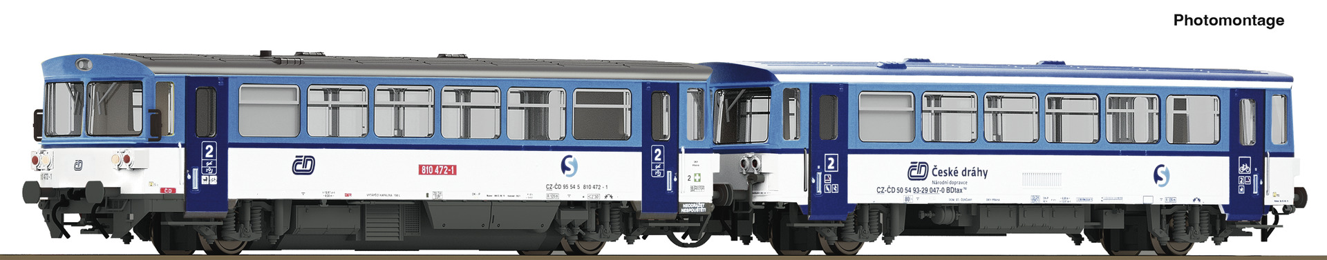 Dieseltriebwagen 810 472 der Tschechischen Staatsbahnen mit Beiwagen, Gattung BDtax.